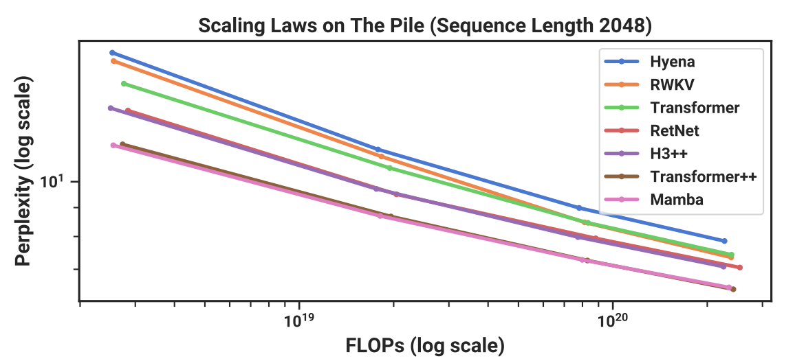 而这些模型只能匹敌普通的transformer,只有mamba才能与transformer++匹敌。