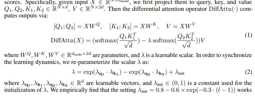 论文介绍: 本质上是在transformer的基础上改为SwiGLU+differential attention,比较简单,论文主要在实验上。论文附录还证明了梯度与传统的transformer类似,所以也说明了至少能保证稳定性。