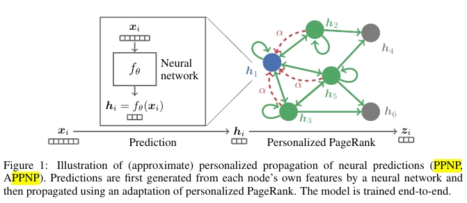 PPNP(personalized propagation of neural predictions)出自ICLR2019的《 Predict then Propagate: Graph Neural Networks meet Personalized PageRank》,简单来说就是先使用神经网络进行特征变换,最后使用pagerank来消息传播。