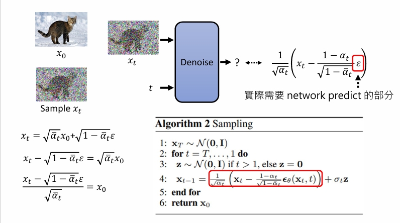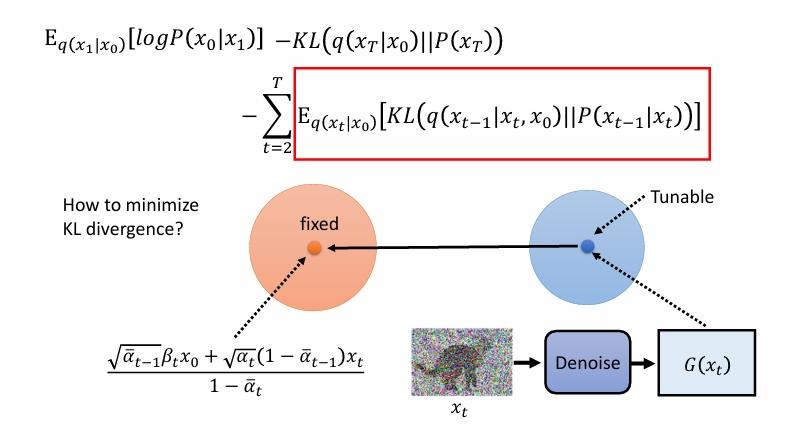 但是实际上方差我们假定是固定的,所以只需要均值越靠近越好。也就是相当于使用去噪神经网络直接预测左下角那一坨。