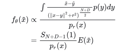 E(\hat x)=\int \frac{1}{S_{N+D-1}(1)}\frac{\hat x-\hat y}{||\hat x-\hat y||^{N+D}}p(\hat y)d\hat y