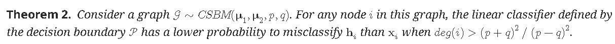 严谨地,论文同样从contextual stochastic block model(CSBM)入手,证明了