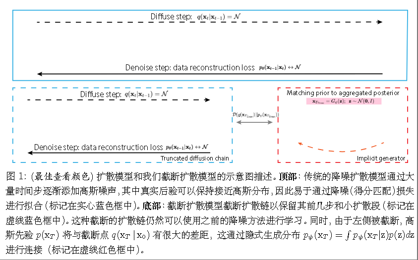 作者选择不是被扩散到纯高斯噪声 xT,而是只扩散到一个中间的、噪声程度较低的时刻$T _ {trunc}$。