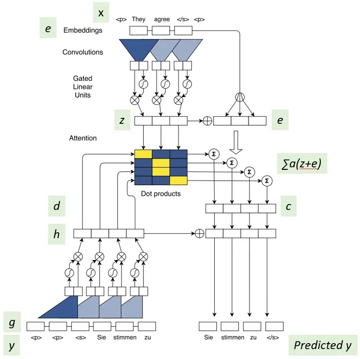 classAttentionLayer(nn.Module): def__init__(self, conv_channels, embed_dim, bmm=None): super().__init__() # projects from output of convolution to embedding dimension self.in_projection = Linear(conv_channels, embed_dim) # projects from embedding dimension to convolution size self.out_projection = Linear(embed_dim, conv_channels)