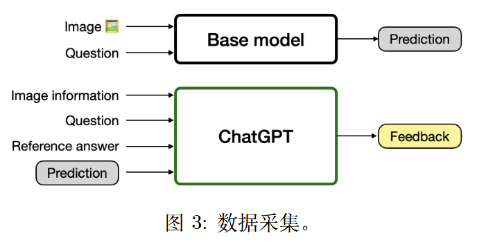 从开源的 LMM 中收集视觉问题的初始回答,并使用专有 LLM 生成反馈和修改。