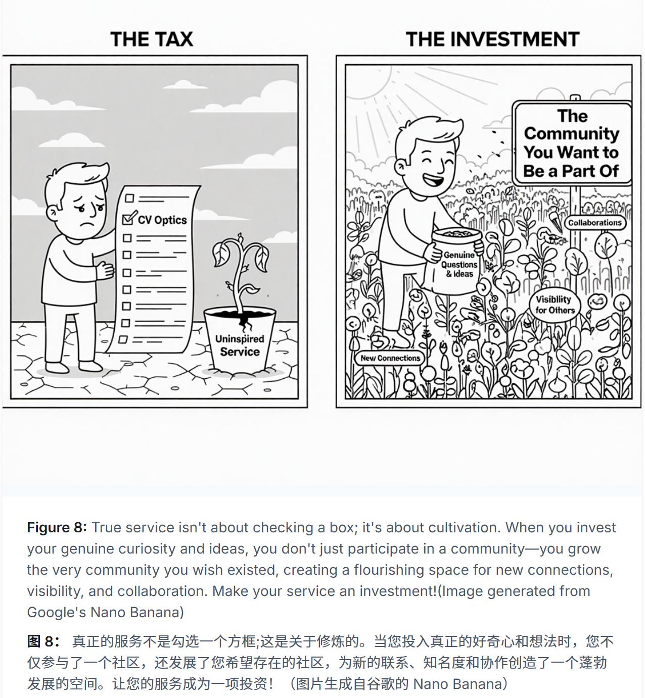 服务通常被视为一件苦差事,一个需要检查的方框。但如果你做得好的话,这可能是你学术生活中最有价值的部分之一。我经常看到人们担任服务角色只是因为他们觉得自己“应该”,或者因为它在简历上看起来不错。这是一个错误。服务应该是关于建立你想成为其中一部分的社区。