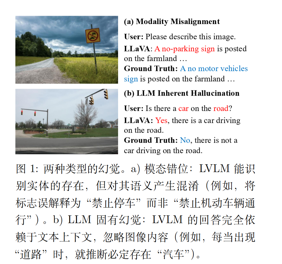 模态错位(Modality Misalignment):视觉编码器与 LLM 语义不对齐(如把“禁止机动车”错识为“禁止停车”)。