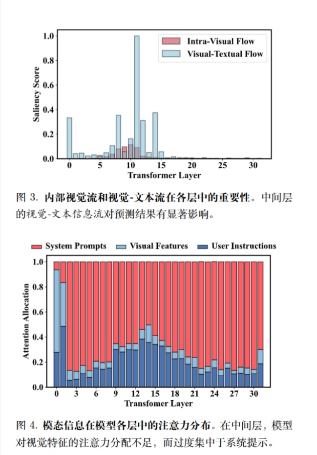 为了更清晰地描绘 MLLMs 中的视觉信息流,基于 $I_l(i, j) $引入了两个定量指标,特别关注涉及图像 token 的信息交互。