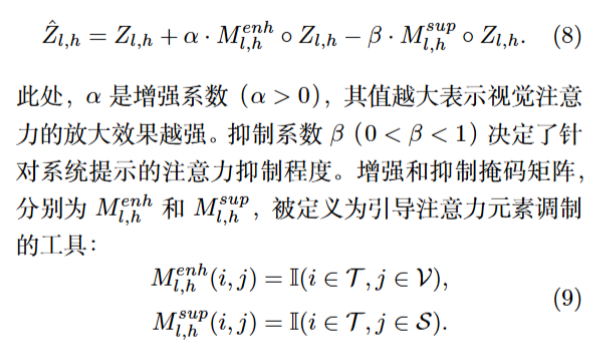 在中间层(即 8 < l < 15)中修改注意力得分矩阵如下: